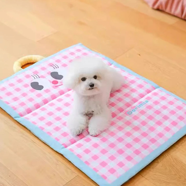“Chill Buddy Mat” – Gingham Cooling Pad with Cute Face for Dogs